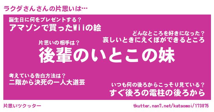 | ヘコむあだ名 | 『ラクにゅー』『つくし』『ラクっ子』 |