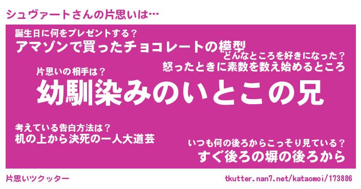 | 男性向けラノベタイトル風あだ名 | 『シュヴァートの憂鬱』 |