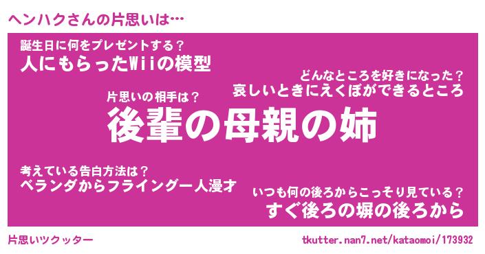 | 意味不明あだ名 | 『ペロリンヘンハク』『永久保存ヘンハク』 |