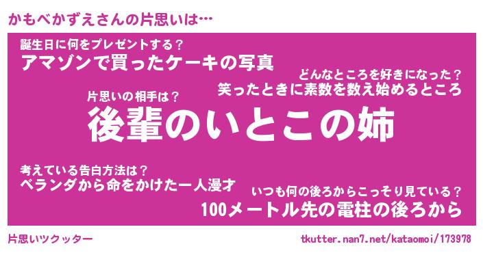 | 女子向けラノベタイトル風あだ名 | 『誰かこのかもべかずえを説明してください! ~契約から始まるウェディング~』 |