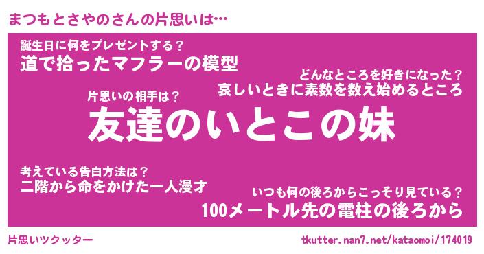 | ヘコむあだ名 | 『まつにゅー』『豆乳』『まつっぺ』 |