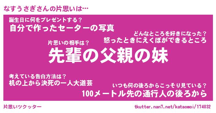 | 胡散臭い通販商品みたいなあだ名 | 『モテモテ間違いなし水晶球…その名も「なすうさぎ」』 |