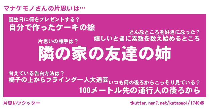 | 胡散臭い通販商品みたいなあだ名 | 『必ず成功する霊験あらたかなお札…その名も「マナケモノ」』 |