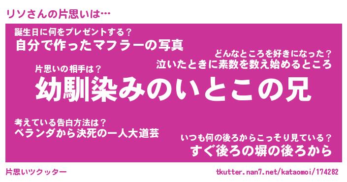 | ヘコむあだ名 | 『リソもー』『なまこ酢』『リソを』 |