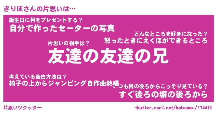 | ヘコむあだ名 | 『きりっふぃ~』『つくし』 |