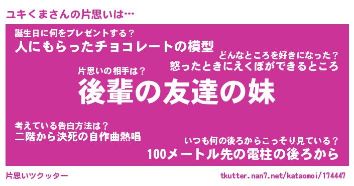 | ファンタジー風あだ名 | 『ユキフェル』『エターナルユキクマー』 |