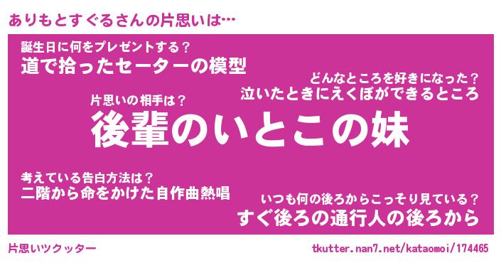 | ヘコむあだ名 | 『ありもー』『牛乳』『ありっ子』 |