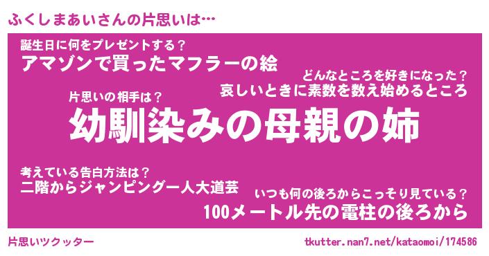 | 女子向けラノベタイトル風あだ名 | 『(仮)ふくしまあいのやんごとなき事情』 |