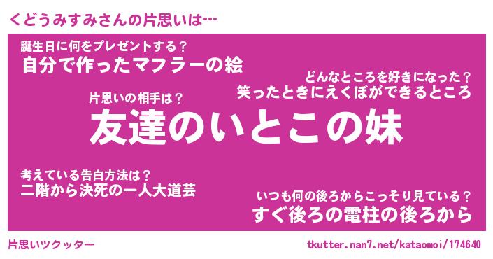 | ヘコむあだ名 | 『くどにゅー』『つくし』『くどお』 |