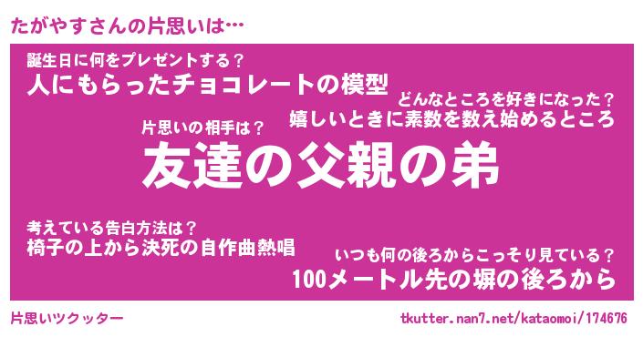 | 胡散臭い通販商品みたいなあだ名 | 『億万長者になれる水晶球…その名も「たがやす」』 |