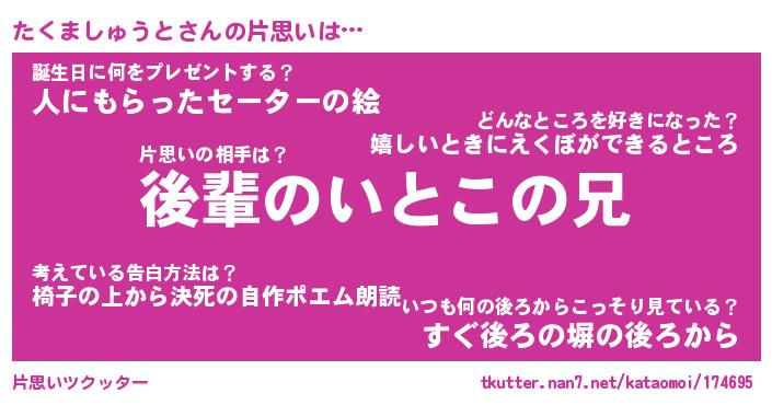 | 恥ずかしいあだ名 | 『プリティーたくましゅうと』『たくちん』 |