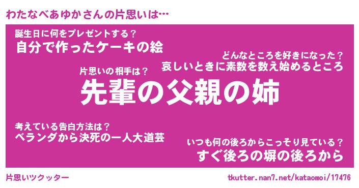 | ヘコむあだ名 | 『わたふぇ~』『つくし』 |