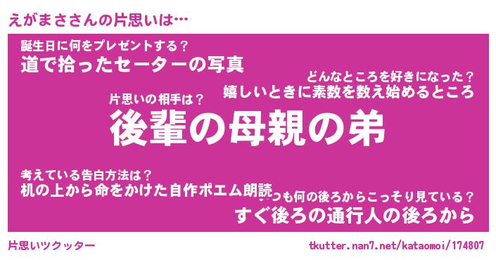 | 意味不明あだ名 | 『ペロリンえがまさ』『永久保存えがまさ』 |