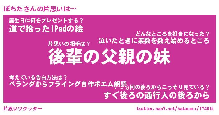 | ヘコむあだ名 | 『ぽちふぇ~』『牛乳』『ぽちっちょ』 |