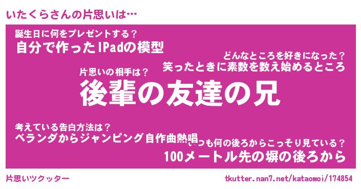 | 意味不明あだ名 | 『ペロリンいたくら』『永久保存いたくら』 |