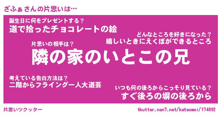 | ヘコむあだ名 | 『ざふもー』『豆乳』『ざふっちょ』 |