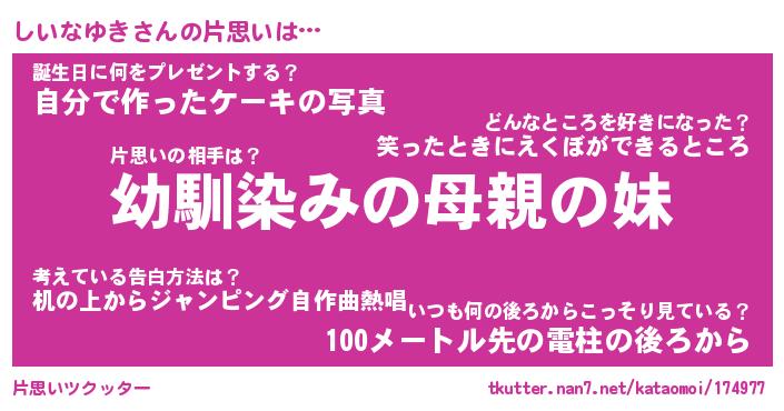 | 胡散臭い通販商品みたいなあだ名 | 『必ず成功するブレスレット…その名も「しいなゆき」』 |