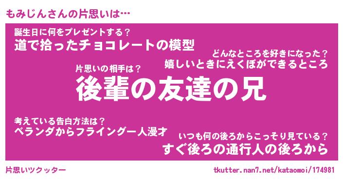 | 胡散臭い通販商品みたいなあだ名 | 『モテモテ間違いなし霊験あらたかなお札…その名も「もみじん」』 |