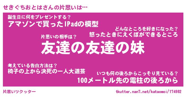 | 伝説のあだ名 | 『封印されしスナイパーせきぐちおとは』 |
