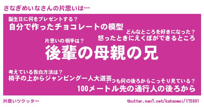| ヘコむあだ名 | 『さなにー』『つくし』『さなお』 |