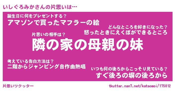 | 胡散臭い通販商品みたいなあだ名 | 『必ず成功するブレスレット…その名も「いしぐろみか」』 |