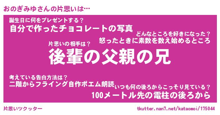 | ヘコむあだ名 | 『おのにゅー』『つくし』 |