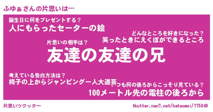 | 胡散臭い通販商品みたいなあだ名 | 『億万長者になれる霊験あらたかなお札…その名も「ふゆぁ」』 |