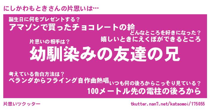 | 胡散臭い通販商品みたいなあだ名 | 『必ず成功する霊験あらたかなお札…その名も「にしかわもとき」』 |