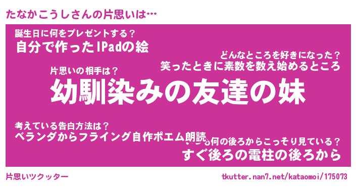 | 男性向けラノベタイトル風あだ名 | 『たなかこうしの憂鬱』 |