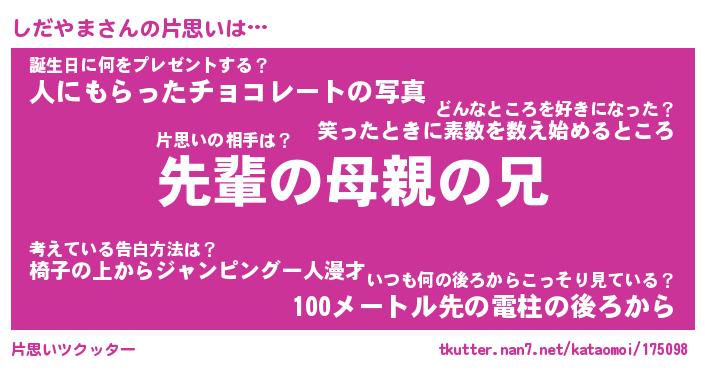 | 意味不明あだ名 | 『ペロリンしだやま』『永久保存しだやま』 |