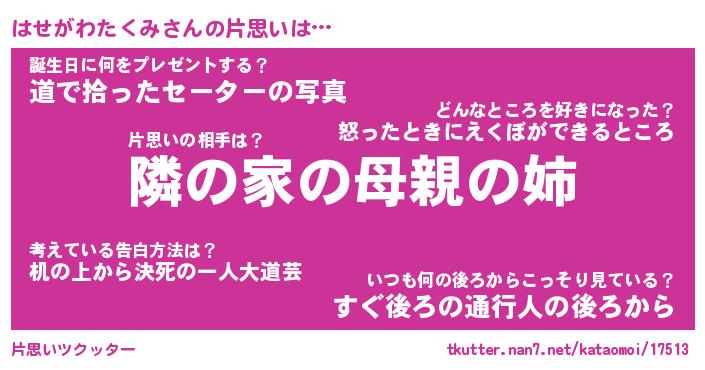 | 伝説のあだ名 | 『伝説の竜騎士はせがわたくみ』 |