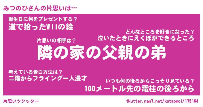 | 胡散臭い通販商品みたいなあだ名 | 『必ず成功する水晶球…その名も「みつのひ」』 |