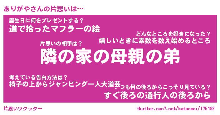 | ヘコむあだ名 | 『ありにー』『豆乳』『あり太郎』 |