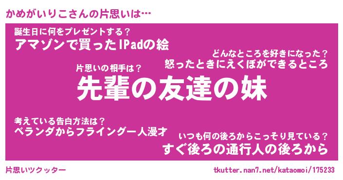 | 胡散臭い通販商品みたいなあだ名 | 『モテモテ間違いなし霊験あらたかなお札…その名も「かめがいりこ」』 |