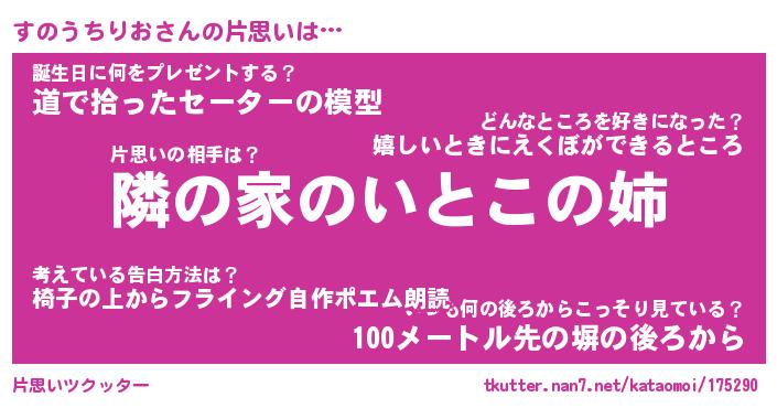 | 胡散臭い通販商品みたいなあだ名 | 『モテモテ間違いなし水晶球…その名も「すのうちりお」』 |