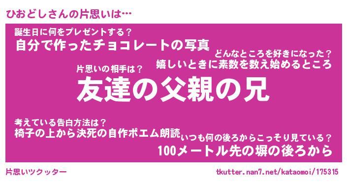 | ヘコむあだ名 | 『ひおふぇ~』『つくし』『ひお太郎』 |