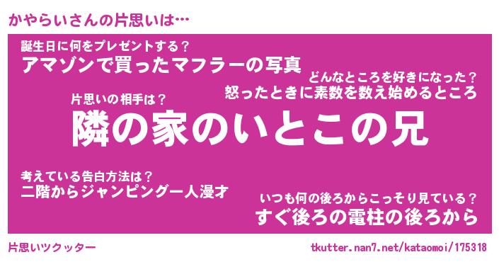 | 男性向けラノベタイトル風あだ名 | 『かやらいの憂鬱』 |