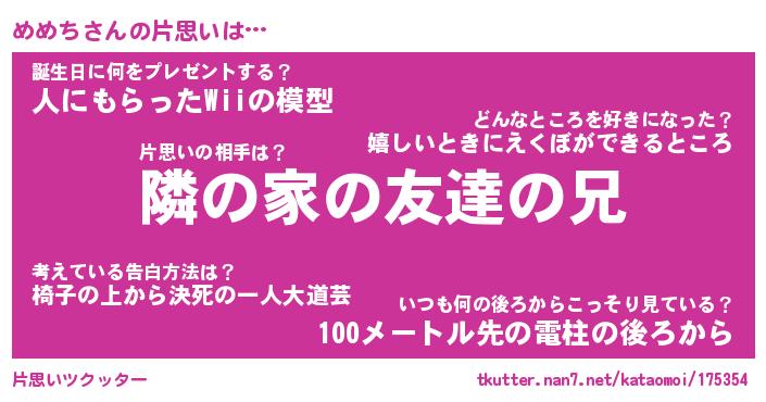 | ヘコむあだ名 | 『めめっふぃ~』『牛乳』 |
