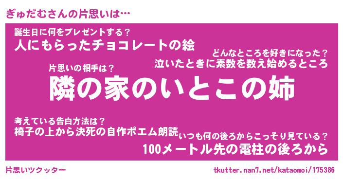 | 胡散臭い通販商品みたいなあだ名 | 『必ず成功する霊験あらたかなお札…その名も「ぎゅだむ」』 |