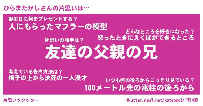 | ヘコむあだ名 | 『ひらにゅー』『つくし』『ひら太郎』 |