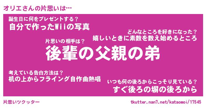 | ヘコむあだ名 | 『オリふぇ~』『牛乳』『オリっぺ』 |