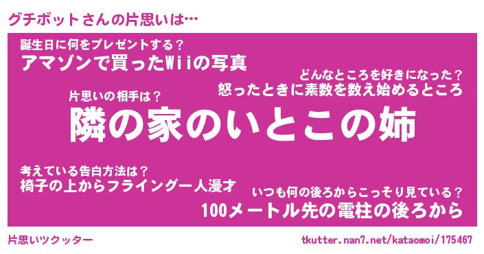 | ファンタジー風あだ名 | 『グチフェル』『エターナルグチボットー』 |