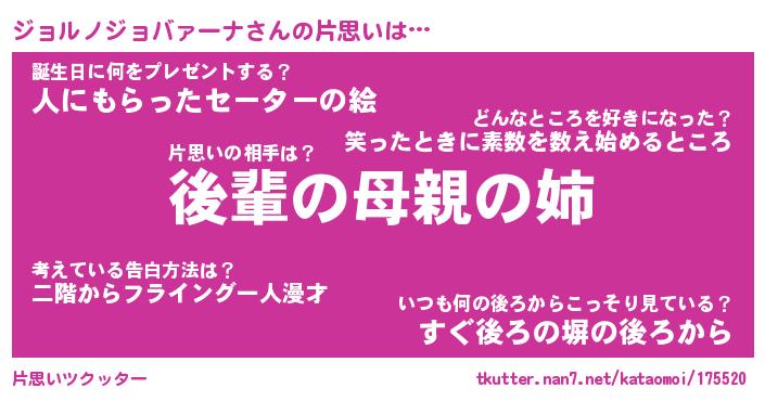 | 意味不明あだ名 | 『ペロリンジョルノジョバァーナ』 |