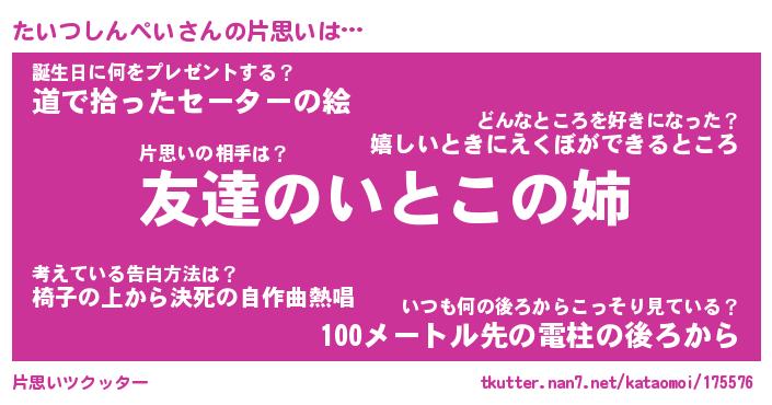 | 胡散臭い通販商品みたいなあだ名 | 『億万長者になれる水晶球…その名も「たいつしんぺい」』 |