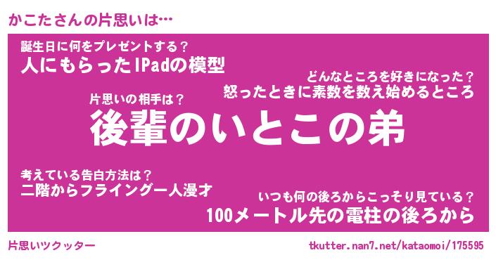 | 胡散臭い通販商品みたいなあだ名 | 『モテモテ間違いなし水晶球…その名も「かこた」』 |