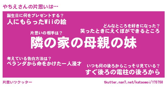 | ヘコむあだ名 | 『やちにー』『レバニラ』『やちお』 |