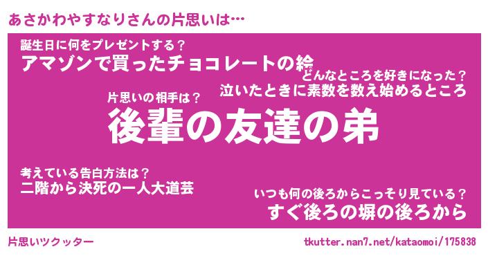 | 伝説のあだ名 | 『封印されしスナイパーあさかわやすなり』 |