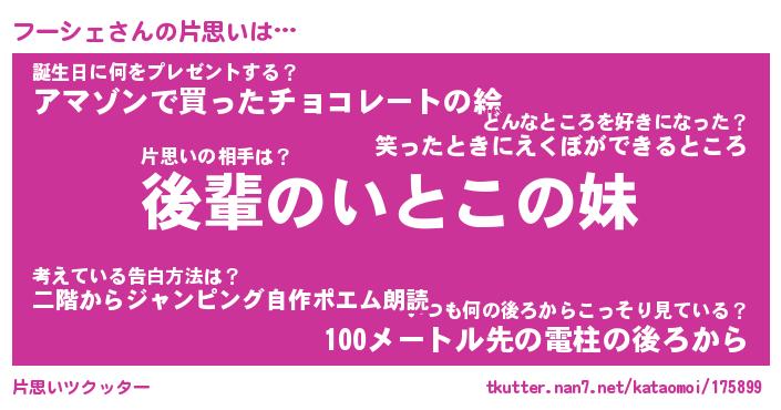 | 意味不明あだ名 | 『ペロリンフーシェ』『永久保存フーシェ』 |