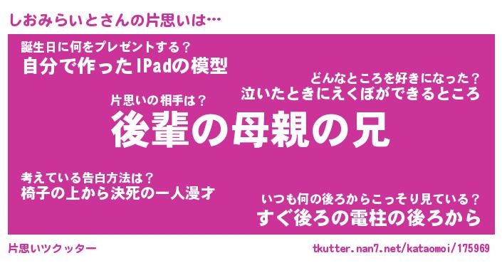 | 胡散臭い通販商品みたいなあだ名 | 『億万長者になれるブレスレット…その名も「しおみらいと」』 |