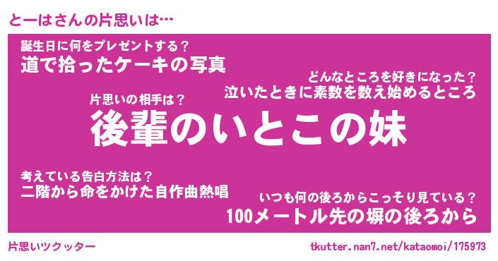 | ヘコむあだ名 | 『とーもー』『豆乳』『とーっちょ』 |